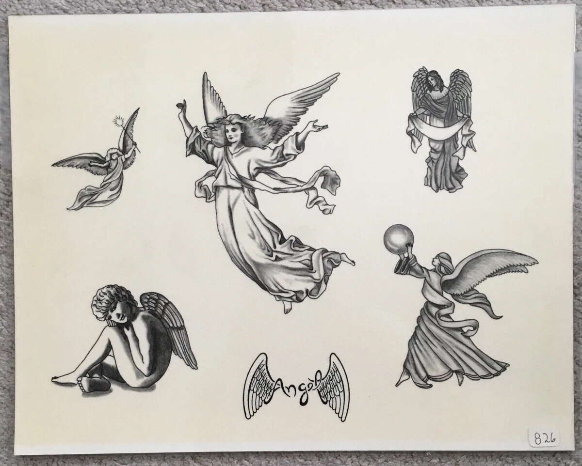 Tattoo Flash Single Sheet Print Heavenly Angel Saint Cherub Heaven 11 X 14 Ebay